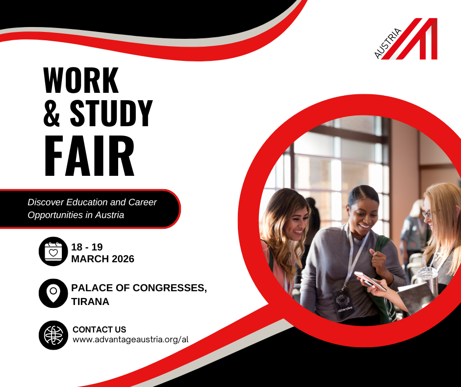 The Work & Study Fair brings together leading companies and renowned educational institutions to showcase exciting career and study pathways. Organized by the Albanian Ministry of Education in cooperation with the Tirana Chamber of Commerce and Industry, the fair provides young talents with valuable inspiration, information, and direct contacts for their professional future.