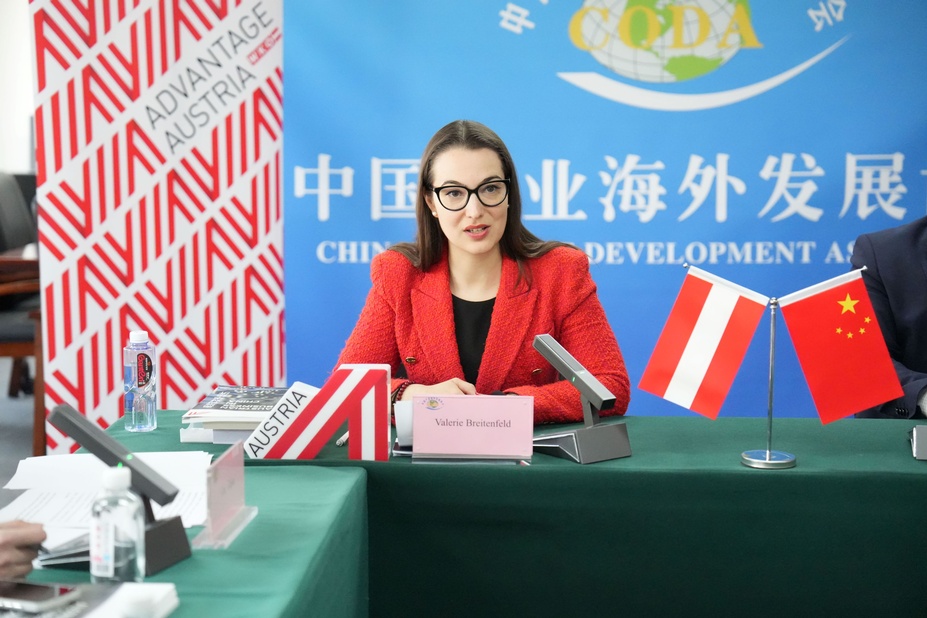 On December 5, Valerie Breitenfeld, Deputy Head of Advantage Austria Beijing, participated in the Austria Investment Environment Promotion Conference in cooperation with the China Overseas Development Association (CODA). Ms. Wu Shanshan, Chief Representative for China of the Austrian Business Agency (ABA), and Ms. Zhang Xiaojun, Regional Manager Asia, International Business of the Vienna Business Agency (VBA), were also invited to present Austria’s and Vienna’s business environment and investment policies. In total, around 30 Chinese companies and institutions participated both online and onsite.