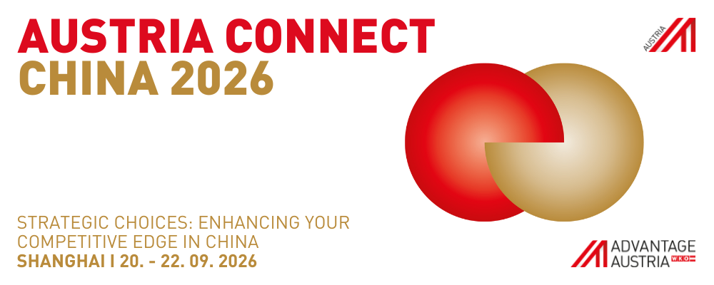 An intensive conference program and the exchange with representatives of Austrian businesses in China are at the very core of AUSTRIA CONNECT China 2026. Expert presentations will focus on challenges, new opportunities and strategic choices for Austrian companies doing business in China.