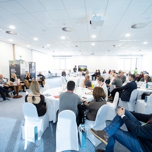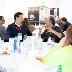 Anschließend fanden zwei Podiumsdiskussionen statt. Die erste mit dem Titel „Grüne Lösungen: Wie Klimaherausforderungen in Wettbewerbsvorteile umgewandelt werden können“, moderiert von Mihela Hladin Wolfe, brachte Bernhard Puttinger (Green Tech Valley Cluster), Tomaž Fatur (Center za energetsko učinkovitost, Institut Jožef Stefan) und Tadej Gosak (Marles) zusammen.